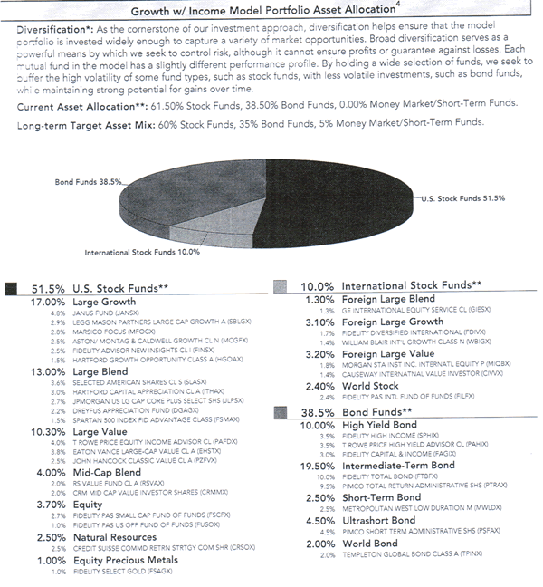 In the Portfolio Advisory Service documents given to me from Fidelity there wasn’t anything I could see that said no 12b-1 charges. On the “Growth Portfolio-the Details” page they recommend 24 funds. Of these 24 funds only 7 are Fidelity which is what made me curious about the whole proposal. I mean, here is (was?) the largest mutual fund company in the world and they could not find funds in their own family to offer?
