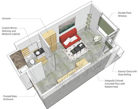 29. Yes, it’s just like a hotel room. A friend of mine once had an apartment of 400 sq. ft. in NYC and it also felt like a hotel room. Here you are definitely trading comfort for convenience. I would live further from work and have more room any day. Even if I was single, I would like to stay home sometimes and it would be too confining. Of course, you wouldn’t accumulate junk because you couldn’t and that’s great. Otherwise, I don’t see any upside.