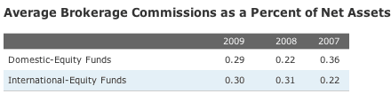 I also ran across this Mutual Funds’ Hidden Costs page at Retire Early Home Page, which was last updated in 2005 but provides some historical perspective. In 2004, Forbes magazine revealed that the Dreyfus Founders Passport Fund paid an “astonishing” 4.64% of assets towards brokerage commissions.