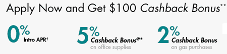 The new promotion from the Discover Business Card has some nice features… First, you can earn a $100 Cashback Bonus when you make $1000 in purchases within 3 months after your account is opened. You can get 5% back on office supplies, 2% on gas, up to 1% on all other purchases.