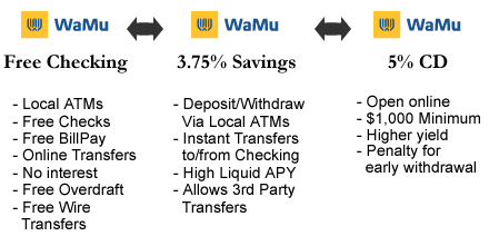 If you already bank at WaMu, you can fund it easily online with a minimum of $1,000. With their existing Free Checking and 3.75% APY Online Savings combo, it makes a convenient package: