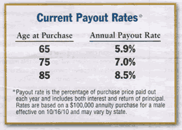 So with a lump sum of $100,000, I could get $445 a month for life. That works out to a 5.34% payout rate.
