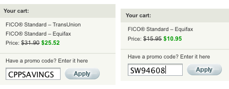 You will end up with your credit reports from all three credit bureaus (Experian, Equifax, and TransUnion) as well as your official FICO score based on your Experian credit report. (You know you have 3 different FICO scores – one from each bureau – right?) A pretty good deal, although I wouldn’t say it’s worth the $39.95 retail price. I wouldn’t wait too long on this, the code could expire at any time. (Update: Appears to be expired, some people are calling in manually and applying the code with success.)
