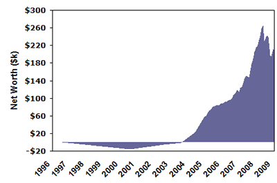 Using four different internet valuation tools – Zillow, Cyberhomes, Coldwell Banker, and Bank of America (old version) – I again took the average and took off 5% to be conservative and 6% for real estate agent commissions. This ended up giving me a 6% value increase this month, which again makes my home value movements dwarf all other activity for this net worth measurement.