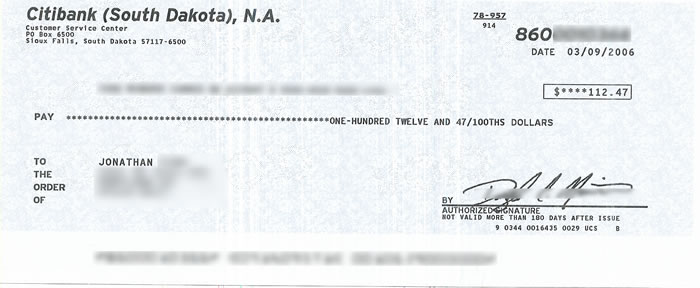 I guess Citibank doesn’t hate me as much as I thought they did. I just received my cashback check for $112.47, right on time:
