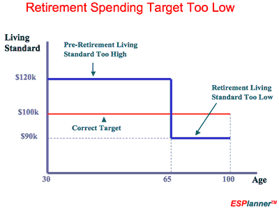 This can actually be a very controversial goal, because it may ask you to borrow money or even stop saving at times, in order to maintain a constant standard of living. Here is an illustration of this idea taken from the website for ESPlanner, which is a financial planning software package made by Kotlikoff.