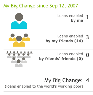 11. Hurray, 14 friends so far, and 3 full loans funded! (A “full” loan varies, but might be $700 in my case)