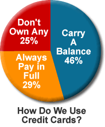 A popular source of this data is CardWeb Inc., which tracks such credit card data. Let’s take their 2002 data, which says that American households had average credit card debt of $8,940. Wow! But look closer. This figure is arrived at by dividing total credit card debt outstanding at the end of 2002 ($750.9 billion) by the number of American households that have at least one credit card (84 million). So not only are you counting balances that will be paid in full within the grace period, you are also only dividing by just the households that have a credit card. There are 21 million families with no credit cards at all.