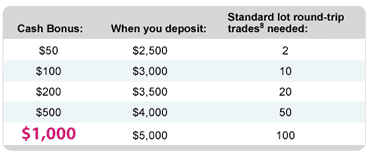 Also, to get the $1,000 bonus, you have to make 100 individual round-trip trades?